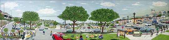 ![]() PAST:Fifty years ago several homes were built on a beanfield. Graded dirt streets connected to a concrete boulevard. Food, fuel and most water were produced locally. Trolleys made transit easy. Air was clean. Homes were safe unlocked. |