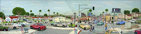 plate. Fertile soil lies smothered under asphalt.Here is the American metropolis supreme: Water is imported across hundreds of miles of dry land in the world's longest aqueducts; Fuel through the world's largest, longest electric wires sparks 1500 square miles of humans; Food trucked daily hundreds of miles to America's largest wholesale market, on Central Avenue, serves an appetite larger than most world nations'; Metal extracted worldwide forges products for consumers consuming for the pleasure of consumption. |